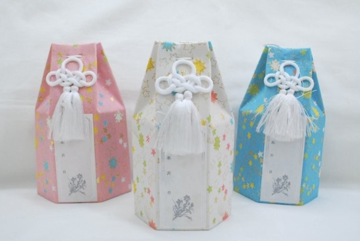 パステルカラーの肉球柄です。閉じ紐の先に可愛いフェルトの肉球マークが付いています。カラーはピンク、ベージュ、ブルーの3色、サイズは3~3.5寸。